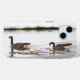 The Canada Goose, Branta canadensis, has a black head and neck, white patches on the face, and a brownish-grey body. The black head and neck with white "chinstrap" distinguish the Canada Goose from all other goose species, with the exception of the Barnacle Goose, but the latter has a black breast, and also grey, rather than brownish, body plumage. The Canada Goose ranges 30 to 43 inches in length and has a 50 to 73 inch wingspan. Males usually weigh 7.1–14 lbs and can be very aggressive in defending territory. The female looks virtually identical but is slightly lighter at 5.5–12 lbs, and has a different honk. The life span in the wild of geese that survive to adulthood ranges 10–24 years Canada Geese are native to North America. They breed in Canada and the northern United States in a variety of habitats. Nests are usually located in an elevated area near water such as streams, lakes, ponds and sometimes on a beaver lodge. Eggs are laid in a shallow depression lined with plant material and down. In recent years, Canada Goose populations in some areas have grown substantially, so much so that many consider them pests for their droppings, bacteria in their droppings, noise, and confrontational behaviour. This problem is partially due to the removal of natural predators and an abundance of safe, man-made bodies of water such as found on golf courses, in public parks and beaches, and in planned communities. Due in part to the interbreeding of various migratory subspecies with the introduced non-migratory Giant subspecies, Canada Geese are frequently a year-around feature of such urban environments. Canada Geese have reached northern Europe naturally, as has been proved by ringing recoveries. The birds are of at least the subspecies parvipes, and possibly others. Canada Geese are also found naturally on the Kamchatka Peninsula in eastern Siberia, eastern China, and throughout Japan. Like most geese, the Canada Goose is migratory with the wintering range being most of the United States. Honking from large groups of Canada Geese flying in V-shaped formation signal the transitions into spring and autumn. In some areas, migration routes have changed due to changes in habitat and food sources. In mild climates from California to the Great Lakes, some of the population has become non-migratory due to adequate winter food supply and a lack of former predators. Canada Geese are primarily herbivores, although they sometimes eat small insects and fish. Their diet includes green vegetation and grains. The Canada Goose eats a variety of grasses when on land. It feeds by grasping a blade of grass with the bill, then tearing it with a jerk of the head. The Canada Goose also eats grains such as wheat, beans, rice, and corn when they are available. In the water, it feeds from silt at the bottom of the body of water. It also feeds on aquatic plants, such as seaweeds. In urban cities, they are also known to pick food out of garbage bins. Adult geese are often seen leading their goslings in a line, usually with one parent at the front, and the other at the back. While protecting their goslings, parents often violently chase away nearby creatures, from small blackbirds to lone humans that approach, after warning them by giving off a hissing sound and will then attack with bites and slaps of the wings if the threat does not retreat or has seized a gosling. Most of the species that prey on eggs will also take a gosling. Although parents are hostile to unfamiliar geese, they may form groups of a number of goslings and a few adults, called crèches.
