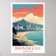 Bring the warmth and beauty of the Pacific islands into your home with this stunning Honolulu, Hawaii Travel Art Poster! Designed in a vibrant, graphic style, this piece showcases the famous beach and skyline backed by volcanic mountains.