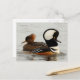 There's lots to be admired when you're a Hooded Merganser. Crests are your specialty, whether you're the male or the female. The ladies have lovely cinnamon crests, and the gentlemen inflatable black-and-white numbers complemented by a one-size-fits-all black tux for all seasons with a swath of reddish brown on their sides.