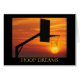 Sports Image Extraordinaire - Cette image puissante montre la silhouette de Basketball Goal avec filet attaché, contre un coucher de soleil stupéfiant. Juste en dessous du filet, le soleil apparaît comme un basketball. Une image photographique puissante qui inspirera n'importe quel fan ou toute nouvelle star du basket. Un must pour les amateurs sérieux de basket