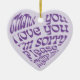 Ho'oponopono Heart-Shaped Text Purple Ceramic Ornament