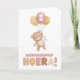 Celebrate a child's birthday in a sweet and playful way with this soft birthday card featuring a teddy bear and balloons. The hand-painted illustration in warm pastel colors radiates joy and softness, perfect for young children.