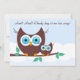 An all brown mommy owl with her huge blue eyes sitting on a tree branch with a few green leaves up in the clear blue sky is so excited to announce the news of her baby boy! He looks just like his mommy....doesn't he? So cute! All text can be customized.
