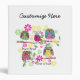 Hootie Owl T-shirts, mugs, bags, cards, stickers, tote bags, magnets, mousepads, wall clocks, pillows, journals, and more, colourful and fun, features five owls on branches surrounded by flowers of magenta, yellow, and green!