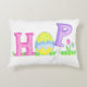 Fun Easter pillow! "Hop" written in a hand drawn design with an Easter egg and spring flowers among the letters.