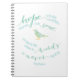 "Hope is the thing with feathers / that perches in the soul / and sings the tune without the words / and never stops at all." - Emily Dickinson. This watercolor style inspirational quote notebook is a beautiful reminder.