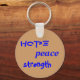 A brown keychain with the message of "HOPE, PEACE, STRENGTH" meaning, philosophy, phrase