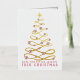 This Christmas card was designed for Las Vegas locals who enjoy giving and receiving more than the religious traditions of the season. The artistic gold swirl Christmas tree is covered with red and white dollar sign poker chips to match the caption: "Hope you win the Jackpot this Christmas." The design was created by Las Vegas artist Rachel Hoyt.