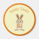 Cute fridge magnet for the Easter holiday featuring an adorable rabbit holding a carrot and the words "Hoppy Easter".