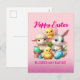 Hoppy Easter Cute Bunny Chicks Lamb Painting Eggs Holiday Postcard