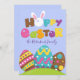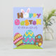 Hoppy Easter Eggs Rabbit Funny Custom Name Text Holiday Card to wish yoru friends and family all the best for the holidays in a funny cartoon style