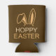 Keep your drinks cool and your Easter celebration stylish with the **Hoppy Hare Khaki Easter Beverage Cooler**! Featuring charming bunny ears—one up, one down—in soft khaki tones, along with the cheerful phrase "Hoppy Easter" on a light yellow background, this cooler adds a festive touch to any spring gathering. Perfect for Easter egg hunts, picnics, or family outings, it’s a practical and stylish way to enjoy your favourite drinks all season long.