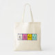 These bags were super cute (I purchased 3). The material is more of a canvas look & feel. The colour of the bag is slightly off white, but the letters look exactly as pictured. I took 3 photos in different lighting. Would recommend! I liked how there was an option to choose the font and colour of the name. The words are legible and the colours are exactly as pictured.