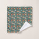 Patterned fabric with whimsical foxes, deer, trees, and leaves on a muted teal background. Two orientations: horizontal and vertical. Cozy, woodland theme.