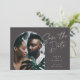 An elegant save the date design with a unique layout, this chic card features a vertical photo in an arched shape on a rich mineral earth brown background, with "save the date" in off-white hand lettered script typography. Personalize with your names, wedding date, and location, and add additional details to the back. A stunning design in a lush colour palette for announcing your wedding.