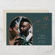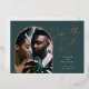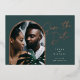 An elegant save the date design with a unique layout, this chic card features a vertical photo in an arched shape on a rich forest green background, with "save the date" in rose gold foil hand lettered script typography. Personalize with your names, wedding date, and location, and add additional details to the back. A stunning design in a lush colour palette for announcing your wedding.
