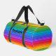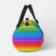 Horizontal Rainbow Stripes Duffel Bag with customizable text.. Other bag options available in drop-down menu.