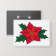 Horizontal rectangle button pin with a Christmas red poinsettia, with dark green leaves and a black outline