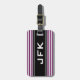 Personalized masculine monogram travel luggage tag. Classic black and plum stripe pattern design with white monogrammed name initial letters. ie JFK Elegant gift idea for men. Manly colour combination. Horizontal stripes in custom colour.