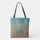 Horizontal Stripes Brown & Blue Monogram Tote Bag