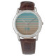 A stylish watch with horizontal stripes in brown, beige and blue in a modern minimalist design style with a touch of beach vibes.