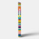 This phone case has a design of horizontal stripes in shades of blue, green, brown, purple, red, yellow, orange, and pink.