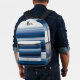 Wide and narrow horizontal stripes in blue, black, grey, and white make a classic and classy backpack.