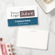 Easy to adjust company or business employee name badge with black and gray striped background. All text is adjustable. Add your own company logo. Made for long horizontal styled logos. If the fast template adjustment does not work for your logo, click on the customize further option to be able to delete and add your logo to the card. Blue colored option.
