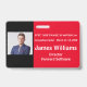 Custom Horizontal Symposium Badge in complimentary red, white and black colours. All elements are changable to suit your needs. Elements: name of symposium, location and date of symposium, symposium attendee photo, symposium attendee title, and name of company. Slot at top for a lanyard. Also available in vertical orientation in this store.