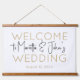 Horizontal White Gold Elegant Wedding Welcome Sign Hanging Tapestry