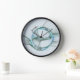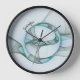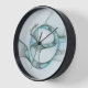 Horloge Abstrait moderne Fractal Blue Turquoise Grey Nom