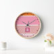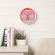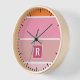 Horloge Bandes en rose, blanc et orange avec Monogramme