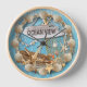 OCEAN VIEW, reads the driftwood notice on this coastal themed wall clock. 12 scallop shells fixed to a circle of rope are used in place of numerals. Beach effect background with shells, starfish, seahorse and fishing net decoration.