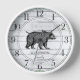Époque blanche rustique bois à laver marche ours nom de famille cadre en bois horloge pour votre cabine, maison de lac, minuscule maison ou tout bois rustique, nature sauvage ou cadre de campagne. L'écriture élégante et les contrastes de la police de caractères serif donnent à ce design une ambiance rustique contemporaine. Vous pourrez choisir entre du bois naturel, du blanc ou du noir.