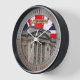 This England-themed wall clock fea picture the Eastfaçade of Buckingham Palace with the Union Flag in the background and the word "London" in the middle. Note: the metallic look is simulated in the artwork. Le metal n'est pas prêt pour la printing of this wall clock.