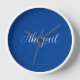Horloge Calligraphie Elégant Bleu Blanc Plaine Nom simple
