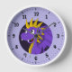 Horloge avec illustration de mignonette violet et jaune dragon fille / conte de fées design pour enfants en cercle noir, design pour enfants par Maxi Harmony,