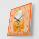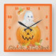 Horloge Carré d'Halloween avec un Fantôme blanc dans un Citrouille qui est lumineux et coloré. C'est sur une horloge Carré.