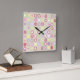 Horloge Carré rose Pois