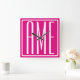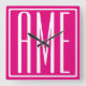 Horloge Carrée 3 Initiales Monogramme | Blanc sur rose chaud