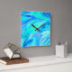 Horloge Carrée Abstrait bleu turquoise