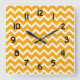 Horloge Carrée Accent orange et blanc chevron clock moderne