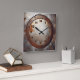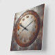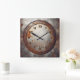 aged steel, red rust circle, weathered steel surface, industrial style, metal look, wall clock,