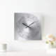 aluminum silver metal look wall clock, scratches and circles, industrial style