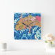 une fille se promène sur une grosse carpe qui nage sur de grosses vagues.