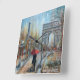 Veuillez apprécier cette scène romantique, avec Tour Eiffel et l'arc de Triumph à l'arrière-plan. Les amants tiennent un parapluie rouge, car ils embrassent. C'est une peinture originale par Marilyn Dunlap.