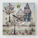 Applique, maisons, village, patchwork, courtepointe, volets, couture, peinture, arbres, nature, plaid, ferme, vintage, rétro