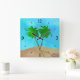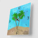 Horloge Carrée Aquarelle Palm Tree Beach Scene Collage