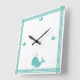 Horloge Carrée Artic teal Blue Whale Stripe coastal Nautical