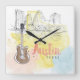 Horloge Carrée Austin, Texas | Esquisse d'aquarelle